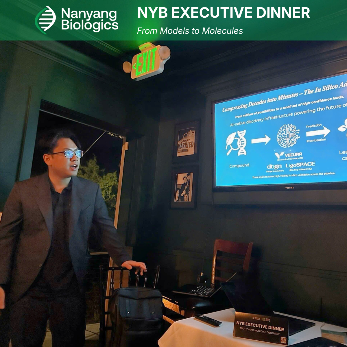 As part of our GTC 2026 activities, we also hosted a Private Executive Dinner with selected participants from biotech, AI, scientific computing, and molecular discovery. The dinner provided a focused setting for more detailed discussion on the scientific and operational requirements of AI enabled discovery systems.